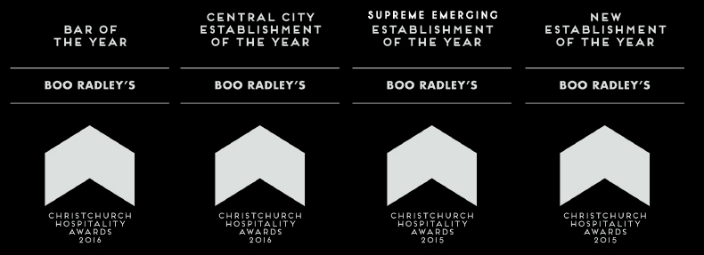 Boo Radley’s Food & Liquor is an award winning southern-USA styled bar & restaurant with a distinctly New Zealand twist. We offer a great sharing plate selection made from the finest local ingredients, complimented with exceptional cocktails, a large range of domestic and international craft beers, a hand-picked wine list and the largest selection of Bourbon Whiskey in New Zealand.
